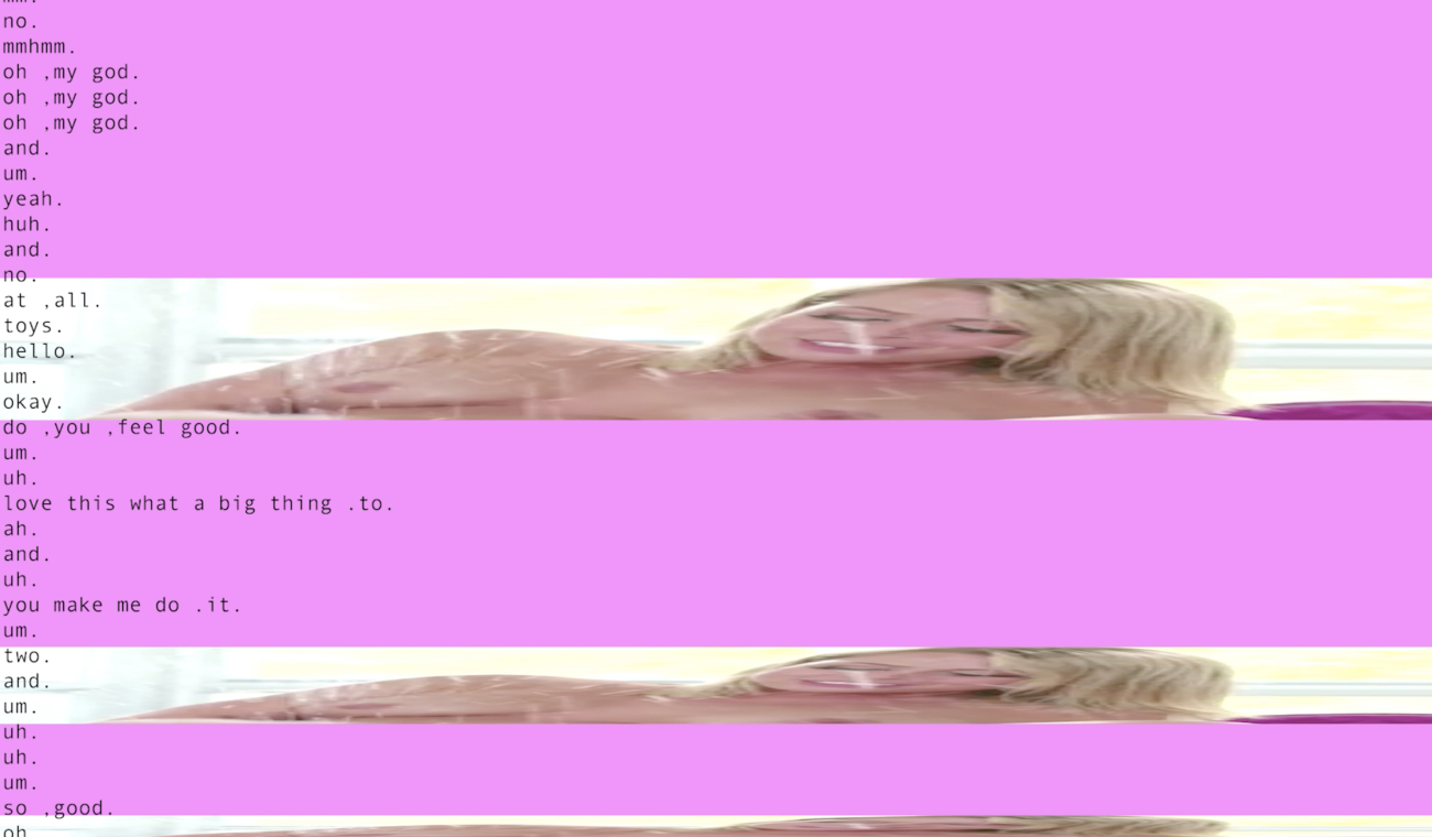 Off the main exhibition room, there’s series of manipulated images – from the aforementioned porn magazines – and an absorbing, disconcerting video work, consisting again of text. Rosengrave stops short of using actual pornographic images – the art here more gnaws away at one’s own experience, which will exist on some level whether we like it or not, because in this era, in our culture, it’s probably harder not to see pornography. Barriers might exist but in truth they exist as legal shielding for the modern smut peddler – no longer is there a back room guarded by a vigilant shop keeper who asks for identification. There’s no layer of plastic. There’s just heaving pixels.